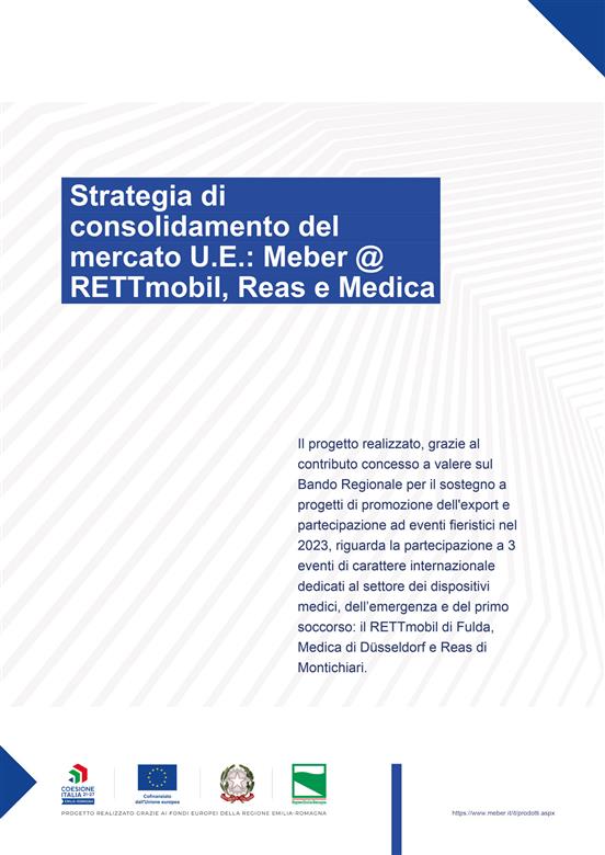 Rendiamo nota la partecipazione al bando Regionale per il Sostegno a progetti di promozione dell’export e partecipazione a eventi fieristici 2023. Il progetto realizzato, grazie al contributo concesso a valere sul Bando Regionale per il sostegno a progetti di promozione dell’export e partecipazione ad eventi fieristici nel 2023, riguarda la partecipazione a 3 eventi di carattere internazionale dedicati al settore dei dispositivi medici, dell’emergenza e del primo soccorso: il RETTmobil di Fulda, Medica di Düsseldorf e Reas di Montichiari.
