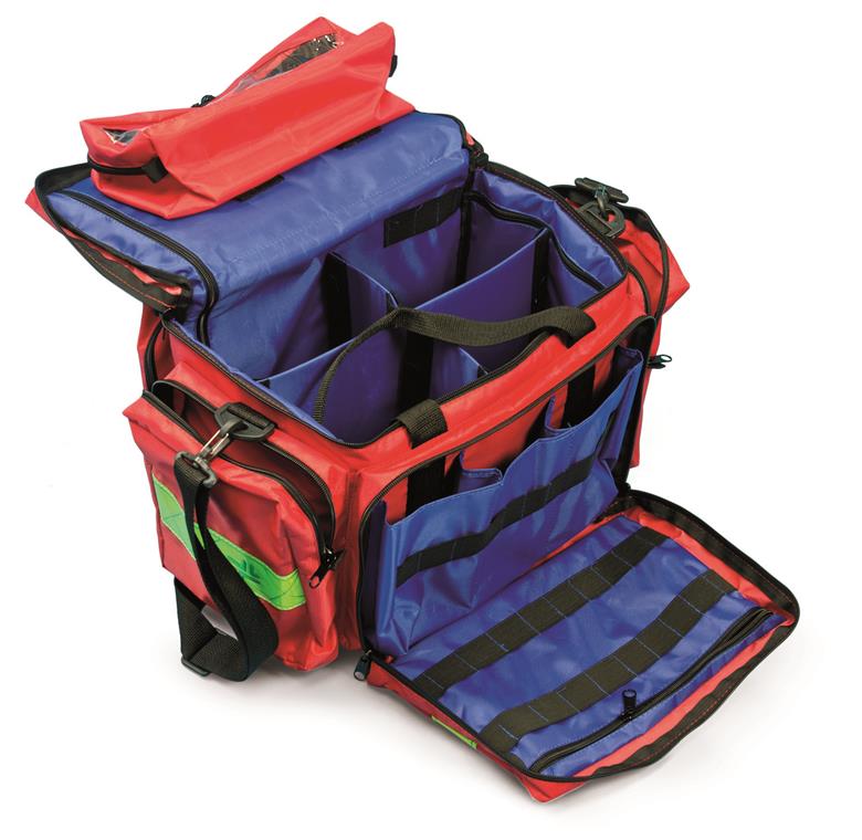 Borsa per emergenza realizzata in Nylon 840. Compatta ma capiente, grazie alle modularità interne permettte l’organizzazione dello spazio in modo personalizzato al fine di ospitare in maniera ottimale quanto necessario per l’emergenza. È composta da 4 tasche, 2 laterali ,una anteriore ed una posteriore totalmente identiche, predisposte ed organizzate con supporti ed elastici atte ad ospitare vario materiale sanitario. È inoltre completa di un’ulteriore borsetta amovibile con frontale trasparente che permette la visualizzazione del contenuto. Grazie alla sua costruzione, totalmente sfoderabile, permette la pulizia e la disinfezione interna. Trasportabile a mano, tracolla o a zaino.
