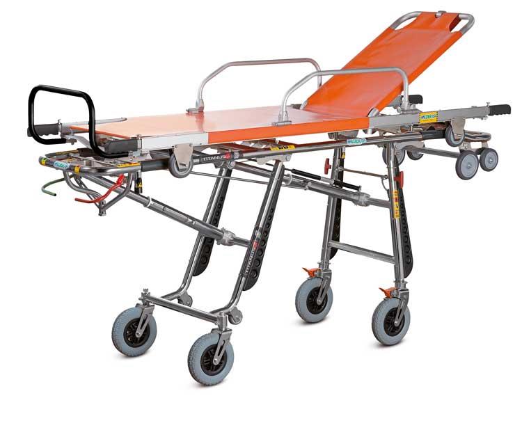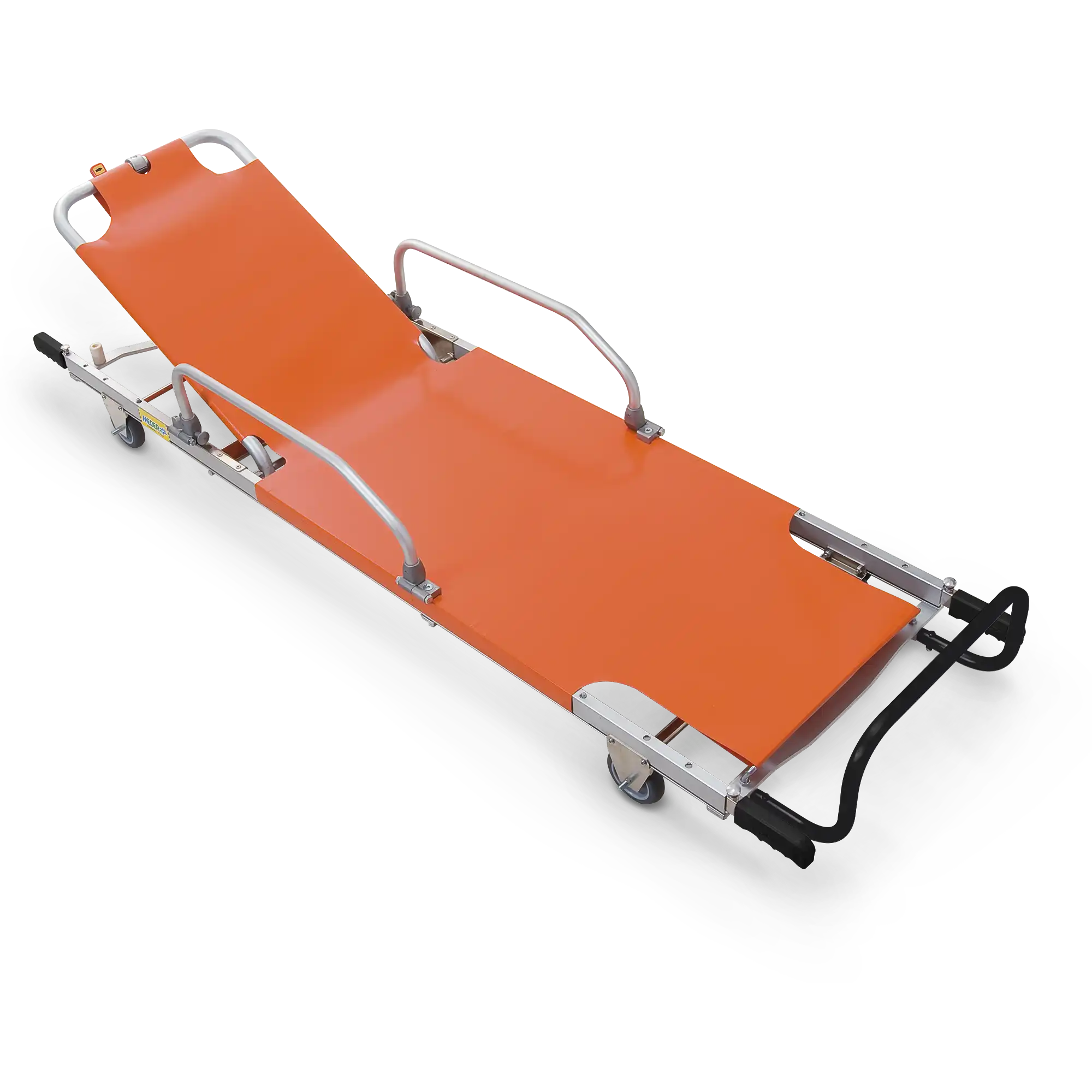 Barella fissa costruita in alluminio anodizzato con telo in nylon ignifugo resistente e facile da pulire. Può essere utilizzata sui ns. carrelli autocaricanti (TITANUS) oppure come barella a mano.