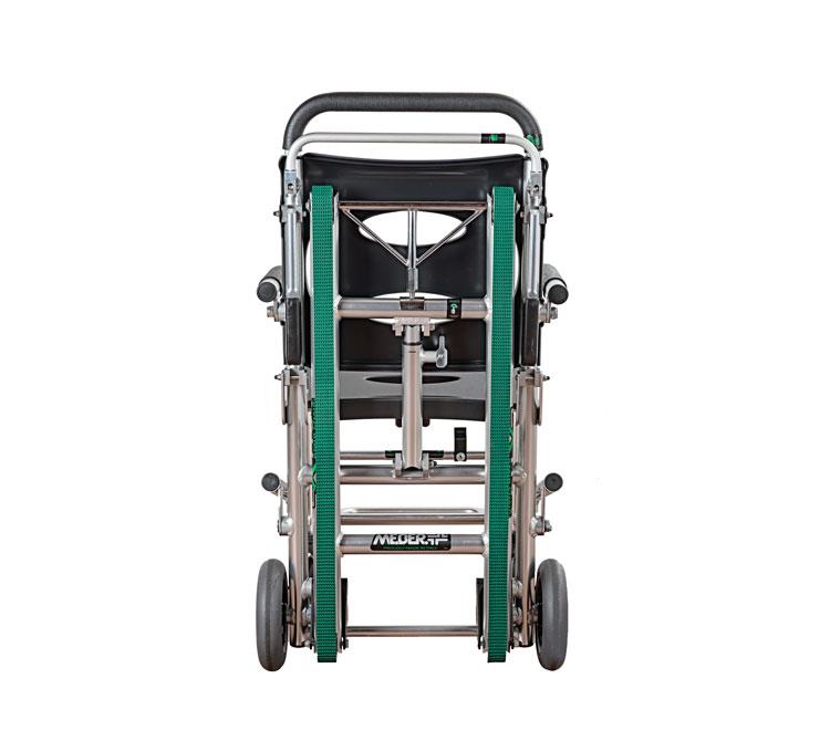 EXTRA è la sedia portantina Me.Ber. con dispositivo cingolato scendiscale, interamente realizzata con speciali leghe di alluminio di derivazione aeronautica. L’inclinazione dello schienale, delle maniglie di presa posteriori e la particolare configurazione delle leve anteriori, garantiscono una perfetta distribuzione dei pesi, alleviando gli sforzi degli operatori. Cingoli lunghi ad alta aderenza permettono l’appoggio della sedia su tre gradini, conferendo ad EXTRA una straordinaria sicurezza e maneggevolezza durante la discesa con il paziente seduto. Durante il trasporto in piano, le ruote posteriori da 200 mm e le frontali da 125 mm garantiscono altresì un elevato comfort e manovrabilità. La dotazione con due pratici braccioli e un maniglione posteriore telescopico rivestiti con guaina protettiva massimizza il comfort e la maneggevolezza. Pedana poggiapiedi ribaltabile con bloccaggio magnetico e innovative soluzioni biomeccaniche, rispetto alle sedie convenzionali, completano le caratteristiche di questo articolo per il soccorso. È disponibile anche la versione con freno sulle ruote posteriori, acquistabile come optional.