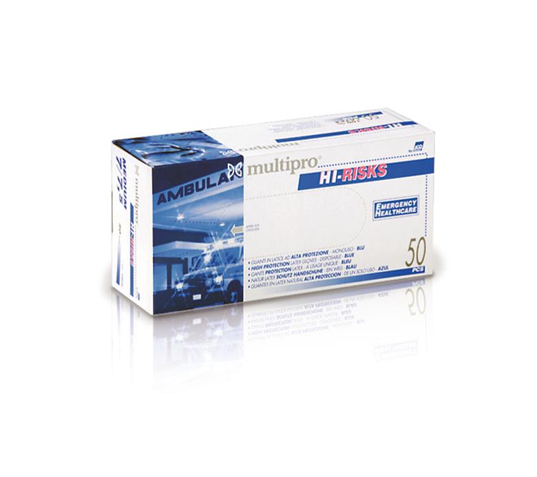 Guanti monouso in lattice di gomma naturale ad alto spessore e lunghezza maggiorata, senza polvere lubrificante, ad elevata biocompatibilità, microruvido, di qualità controllata e certificata. Sottoposto a processo di alogenazione. Caratteristiche di resistenza superiori a quelle di un normale guanto monouso. Disponibile in 4 misure, scatole da 50 pz.