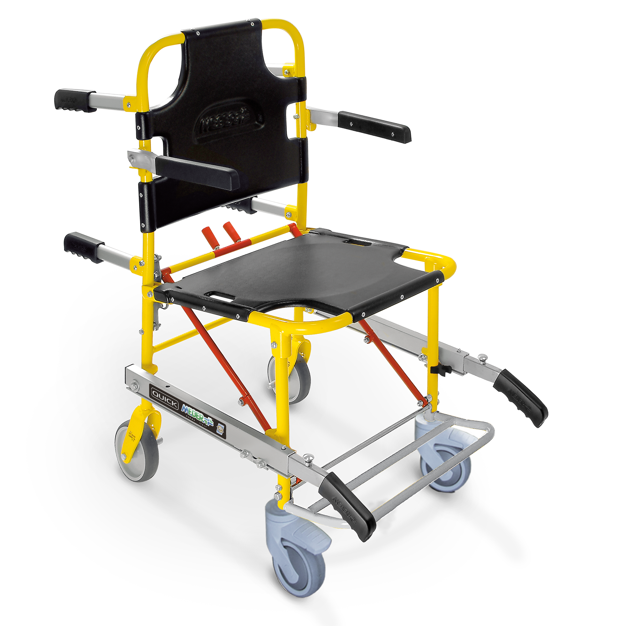 È un dispositivo di importanza fondamentale per l’operatore del soccorso. Dotata di 4 ruote (2 fisse posteriori Ø 125 mm e 2 girevoli anteriori con freno Ø 100 mm), braccioli pieghevoli, pedana poggiapiedi ribaltabile, 4 maniglie posteriori e 2 anteriori estraibili, garantisce comfort e sicurezza al paziente. Lo schienale e il sedile in materiale termoplastico sono facilmente sanificabili. Viene fornita completa di borsa nera a 3 cinture (Art. 590/N).