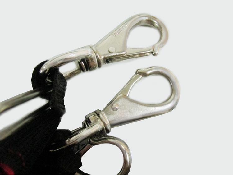 Cinghie di trattenimento standard integrate con moschettoni: sistema innovativo pensato per velocizzare e facilitare il lavoro del soccorritore, mantenendo elevato il comfort e la garanzia di stabilità della colonna.